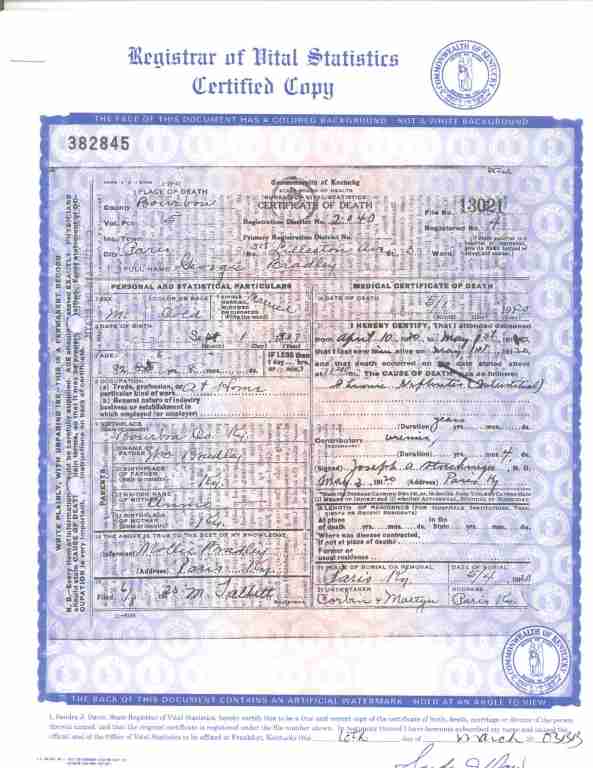 Place of Death: Bourbon County, KY