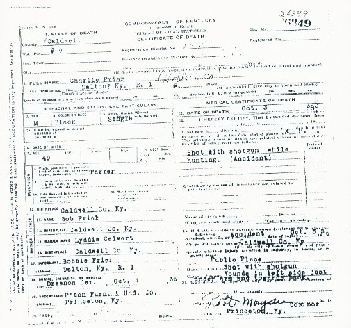 Informant: Bobbie FRIAR, Dalton KY, R. 1