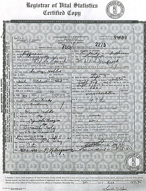Place of Death: Jefferson Co., KY