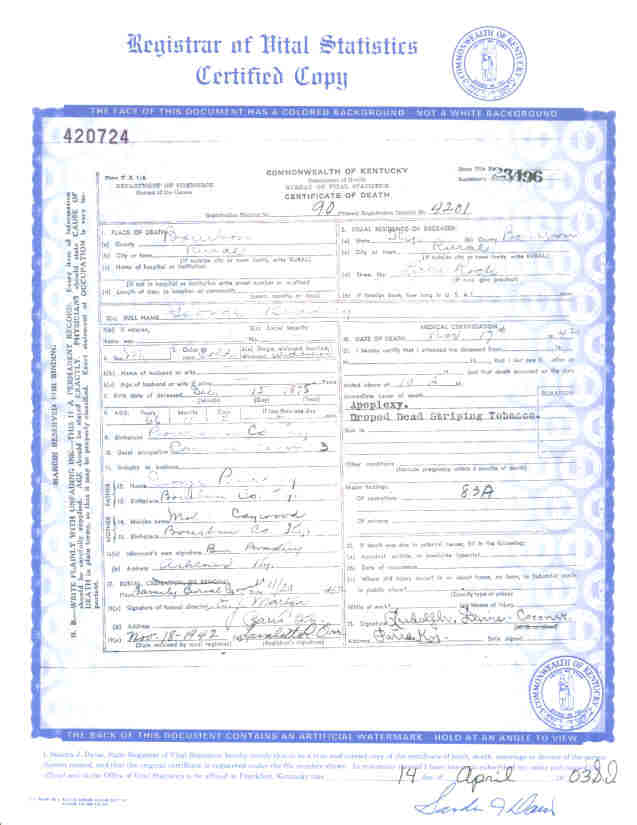 Cause of Death: Apoplexy, Dropped dead stipping tobacco