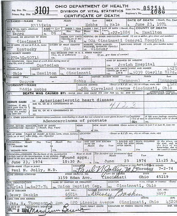 Place of Death: Cincinnati, Hamilton Co., OH