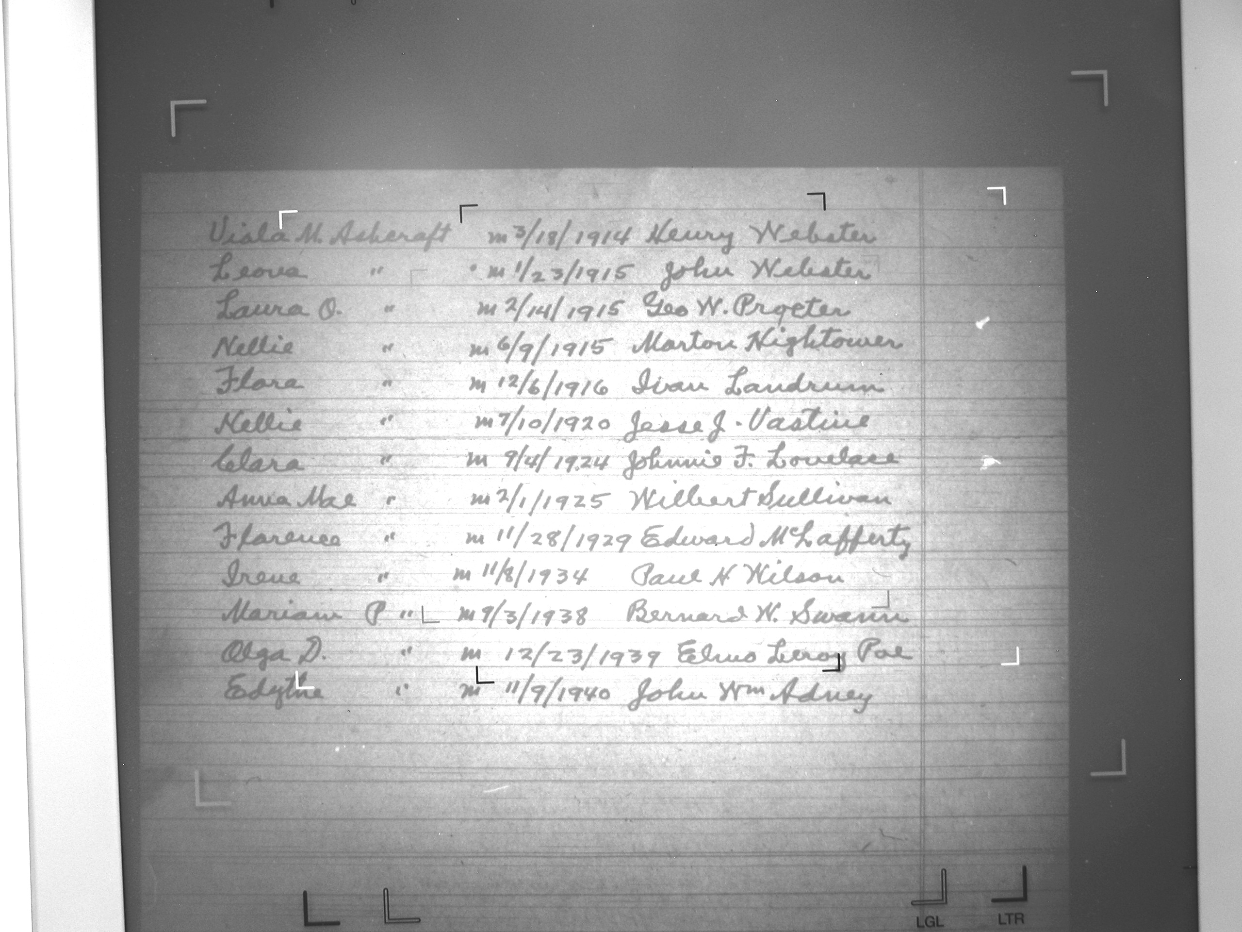 These records have not been copied by either of this site's coordinators from other sites, as has been implied by some. Sources have included records from the E.E. Barton research files, military records, newspapers, microfilm and/or compiled lists that were provided by family members and other researchers. The majority of the additions to the marrriage index pages on 17 and 30 Jun 2007 were transcribed from FHC microfilm #973027.
