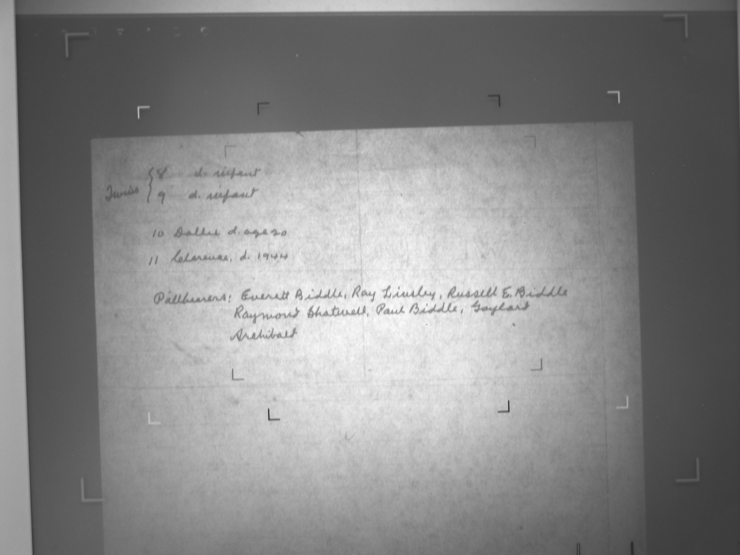 1944; Pallbearers: Everett Biddle, Ray Lindsley,