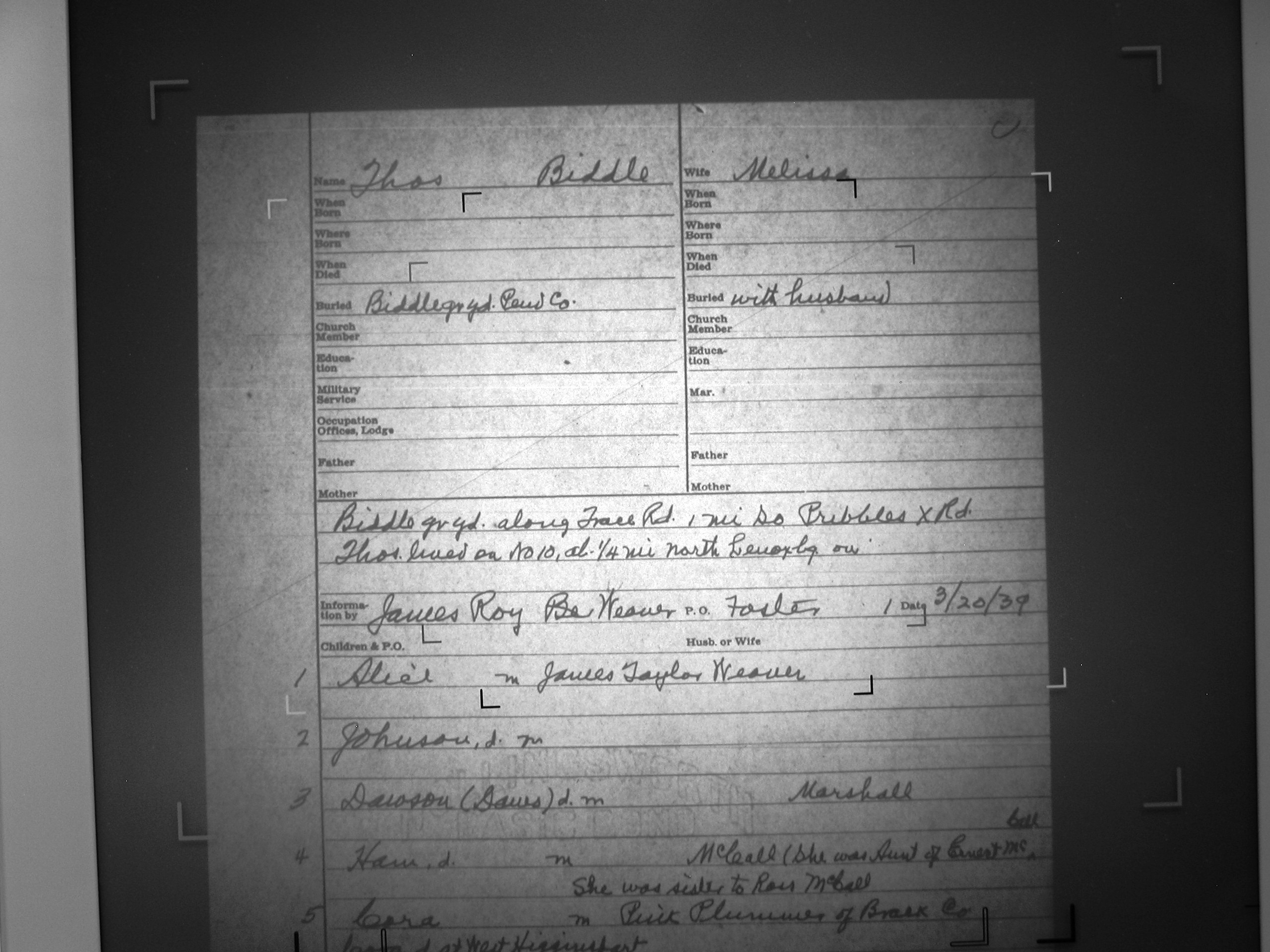 both buried in the Cummins - Biddle Cemetery, Holt's