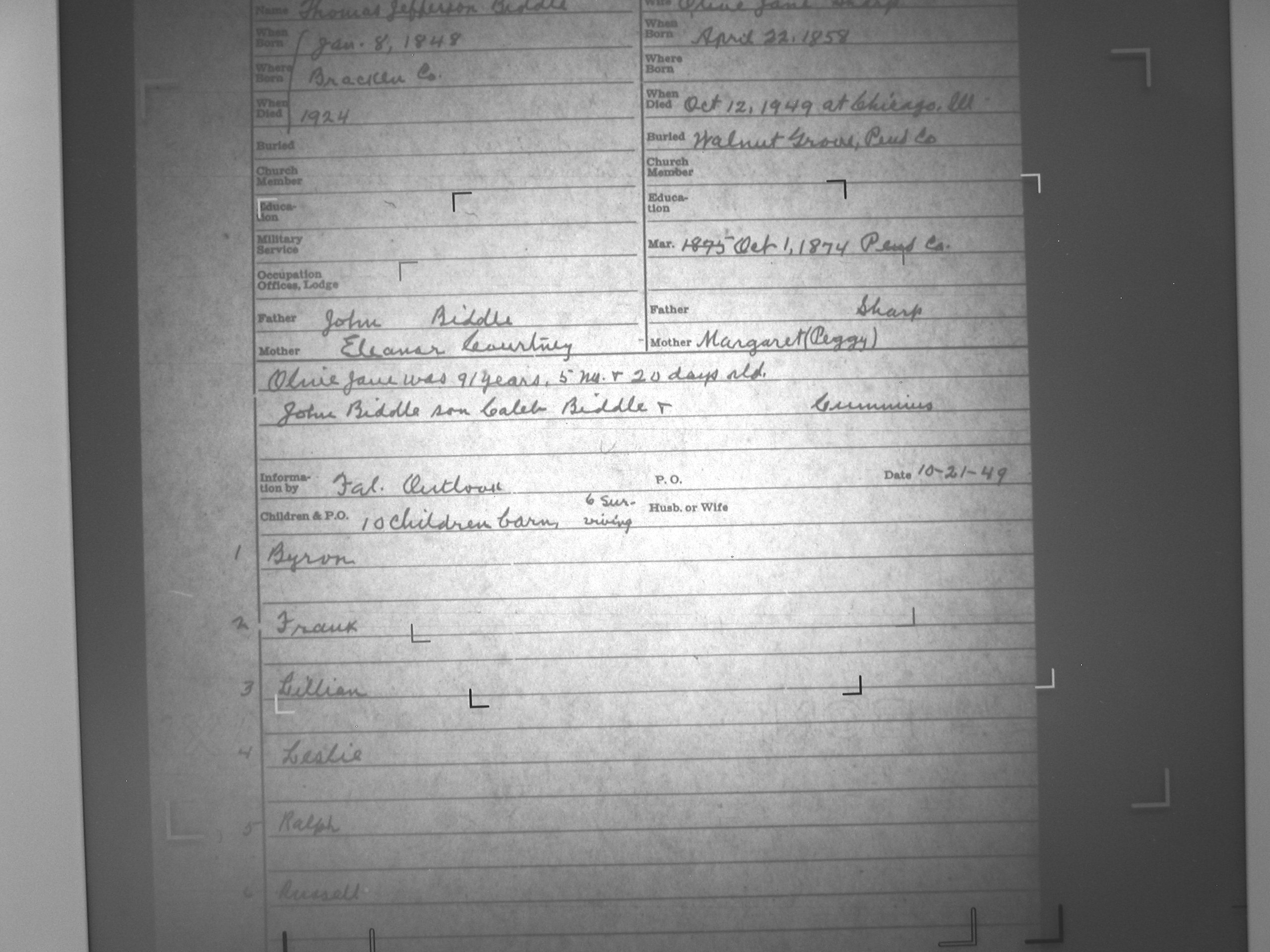 Thomas Jefferson Biddle, s/o John Biddle and Eleanor