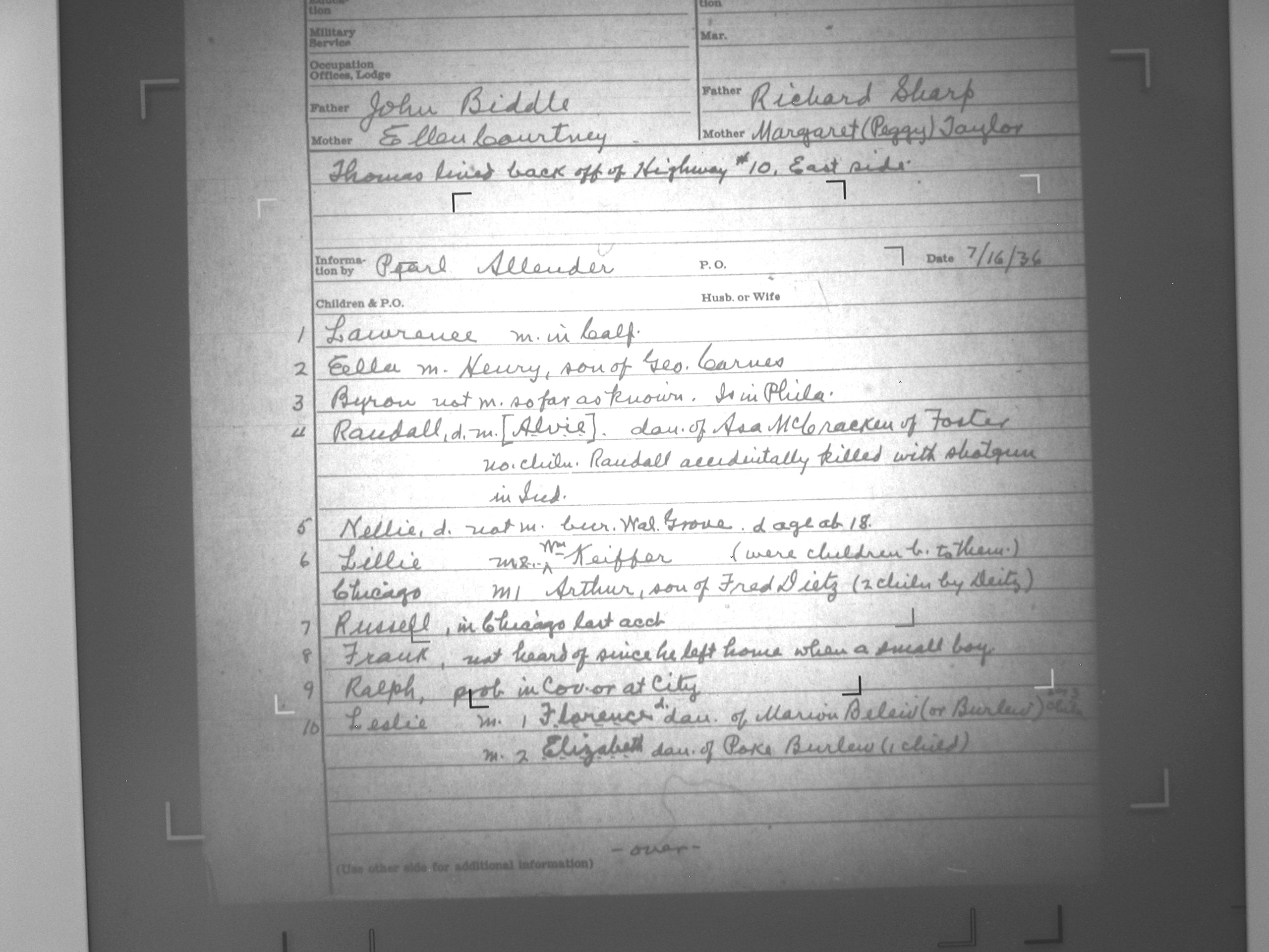 Information By: Pearl Allender 7/16/36