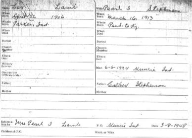 Information By: Mrs. Pearl I. Lamb; P.O.: Muncie, Ind.; Date: 3-8-1948