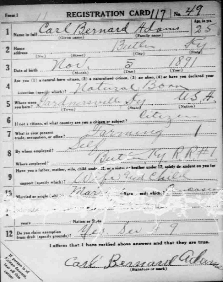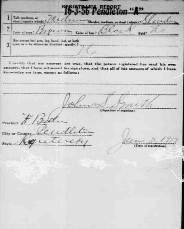 War I Draft Registration Card
