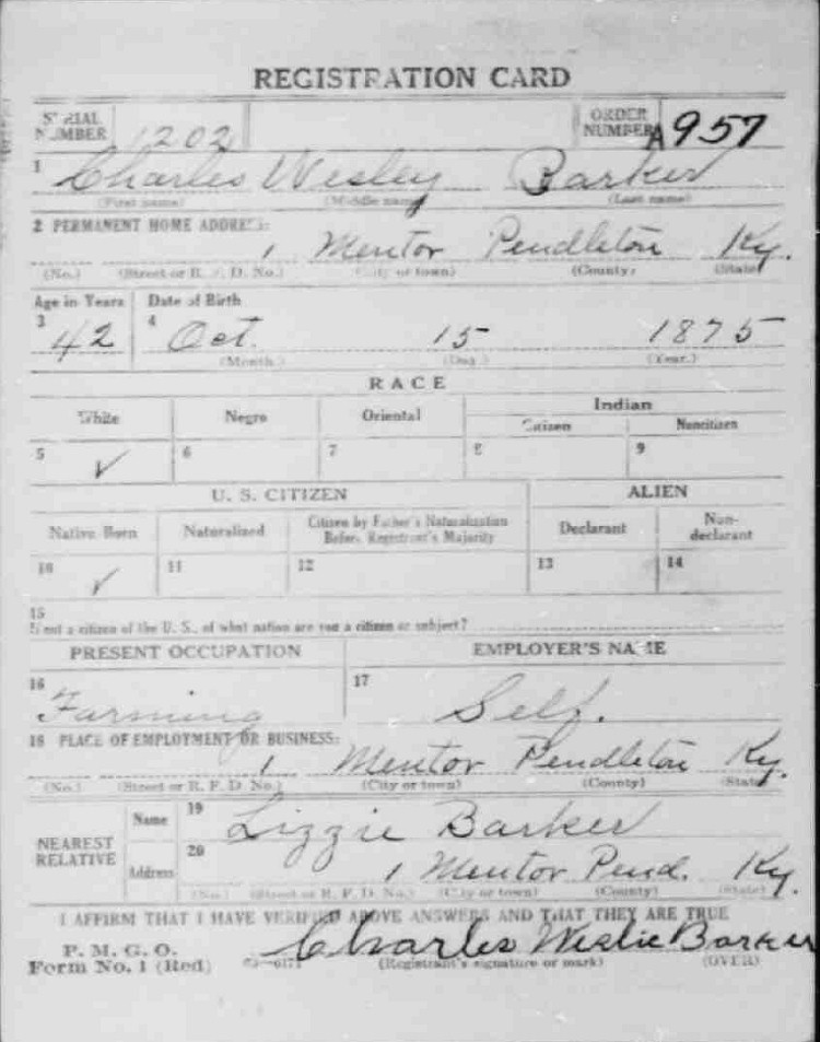 War I Draft Registration Card
