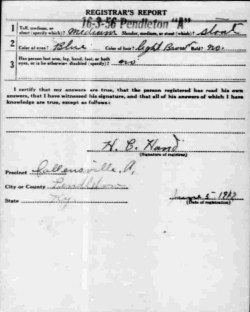 War I Draft Registration Card