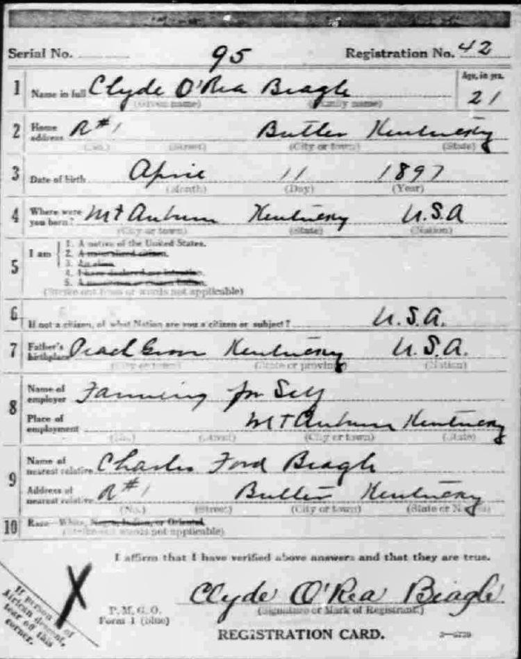 War I Draft Registration Card