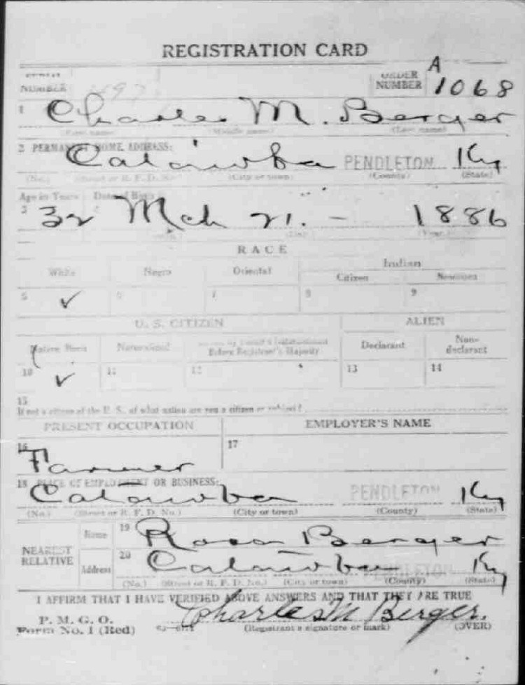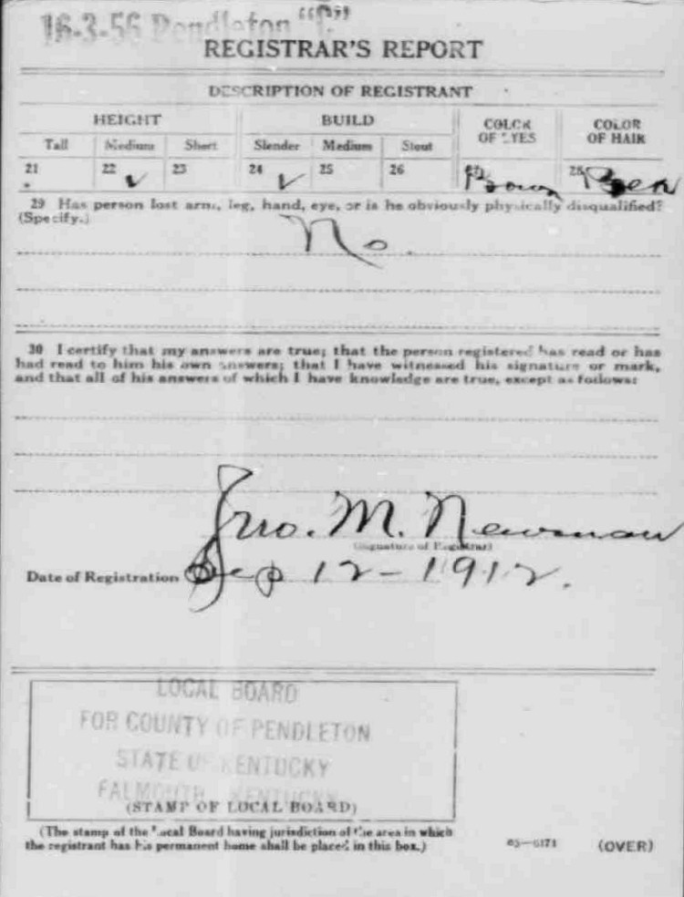 War I Draft Registration Card