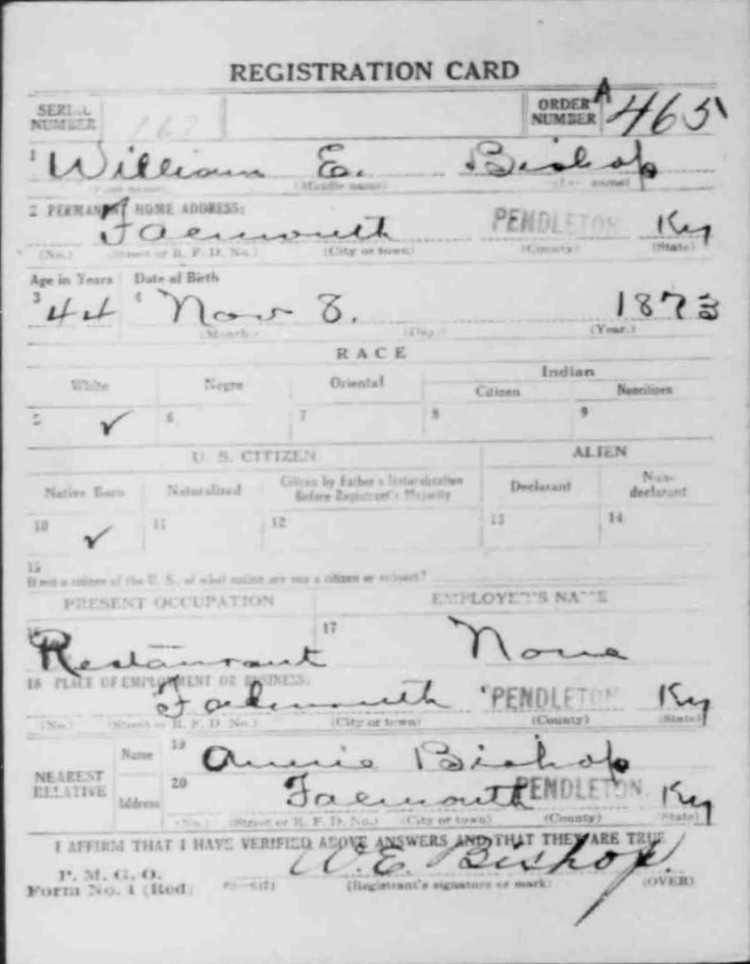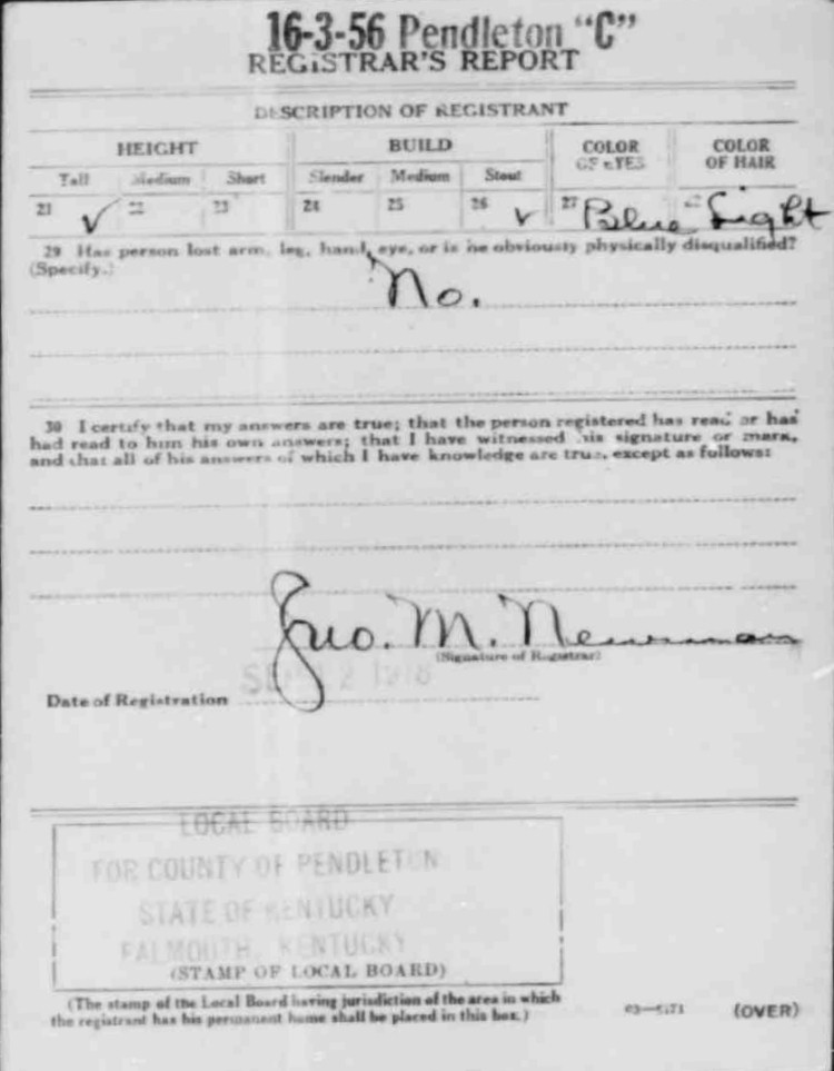 War I Draft Registration Card
