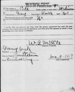 War I Draft Registration Card