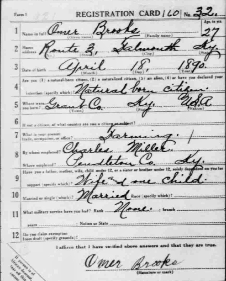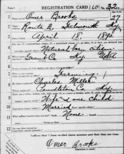 War I Draft Registration Card