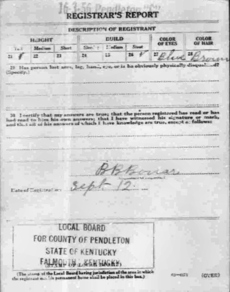 War I Draft Registration Card