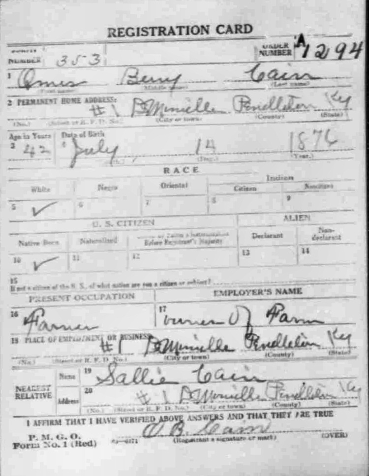 War I Draft Registration Card