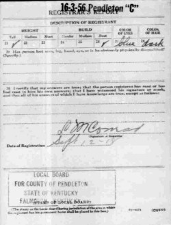 War I Draft Registration Card
