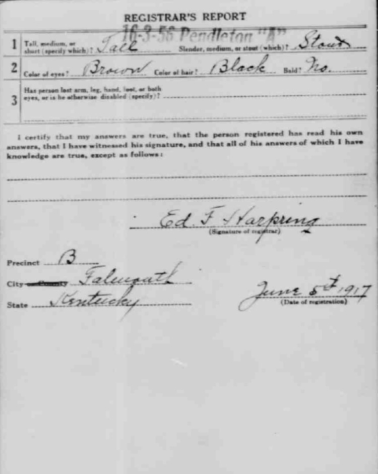 War I Draft Registration Card