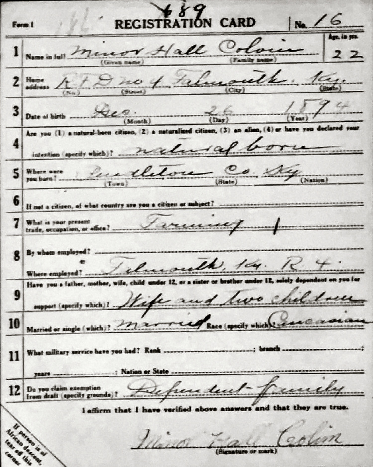 War I Draft Registration Card