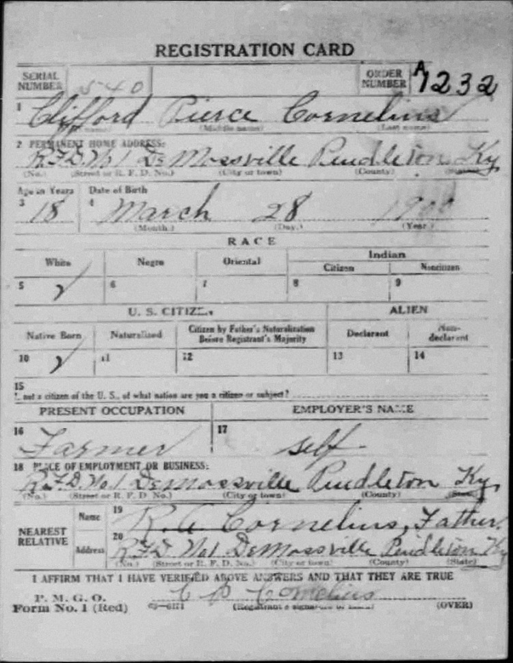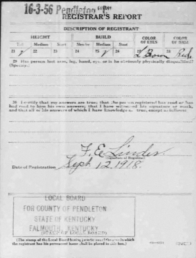 War I Draft Registration Card