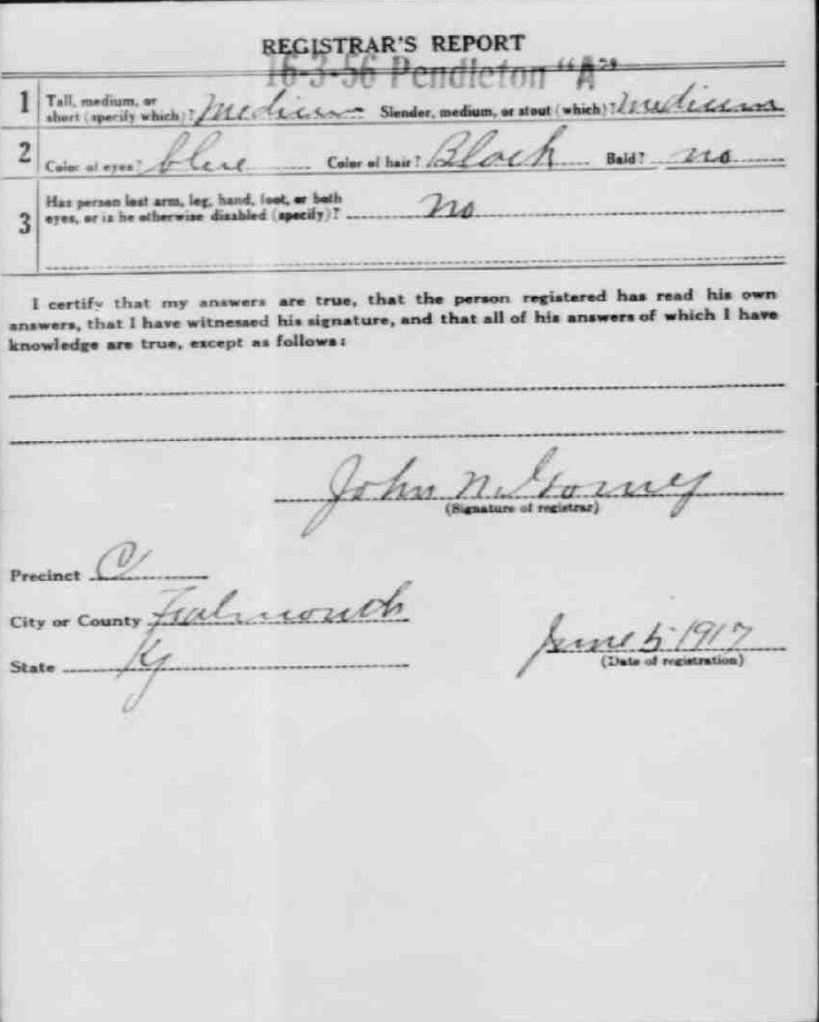 War I Draft Registration Card