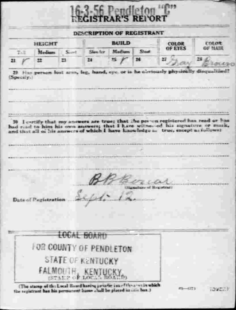 War I Draft Registration Card