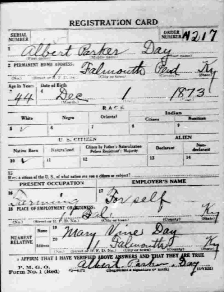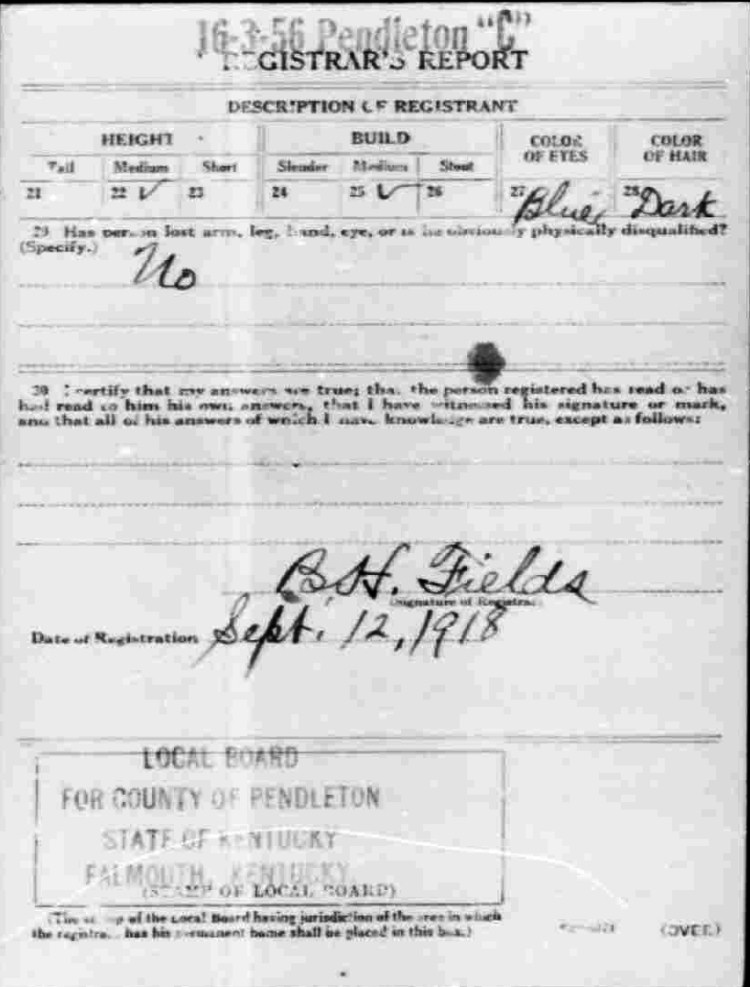 War I Draft Registration Card