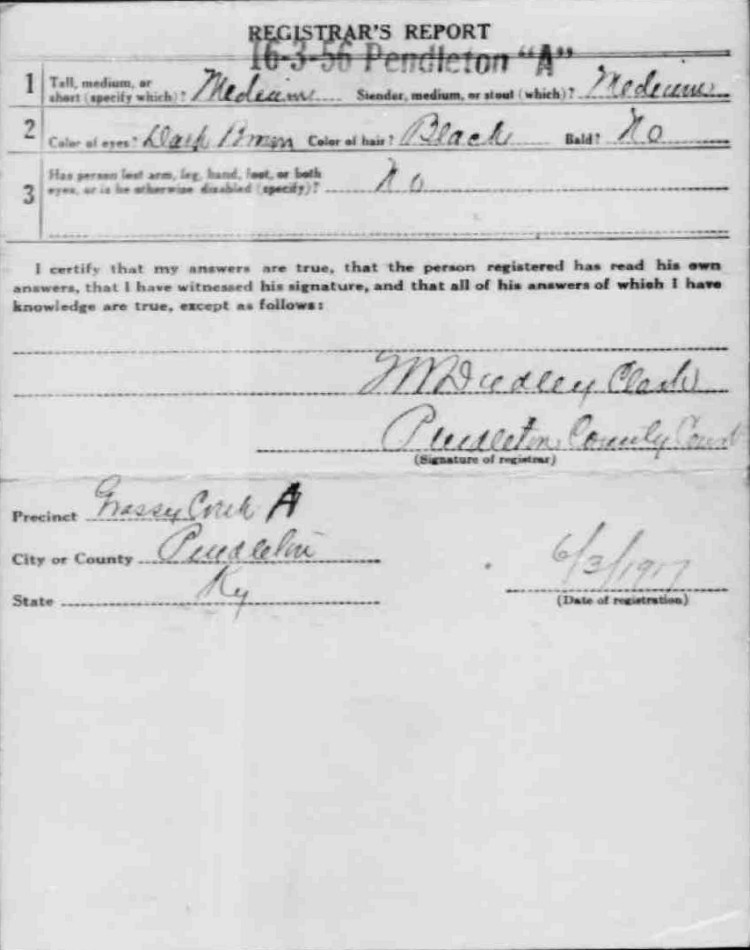 War I Draft Registration Card