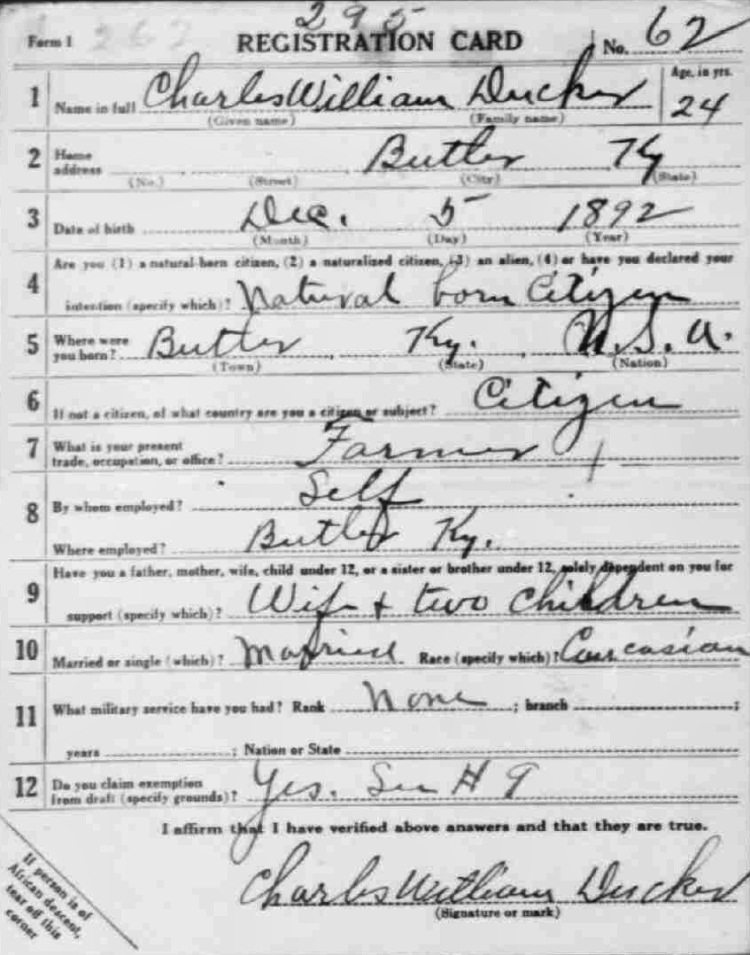 War I Draft Registration Card