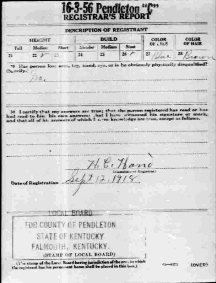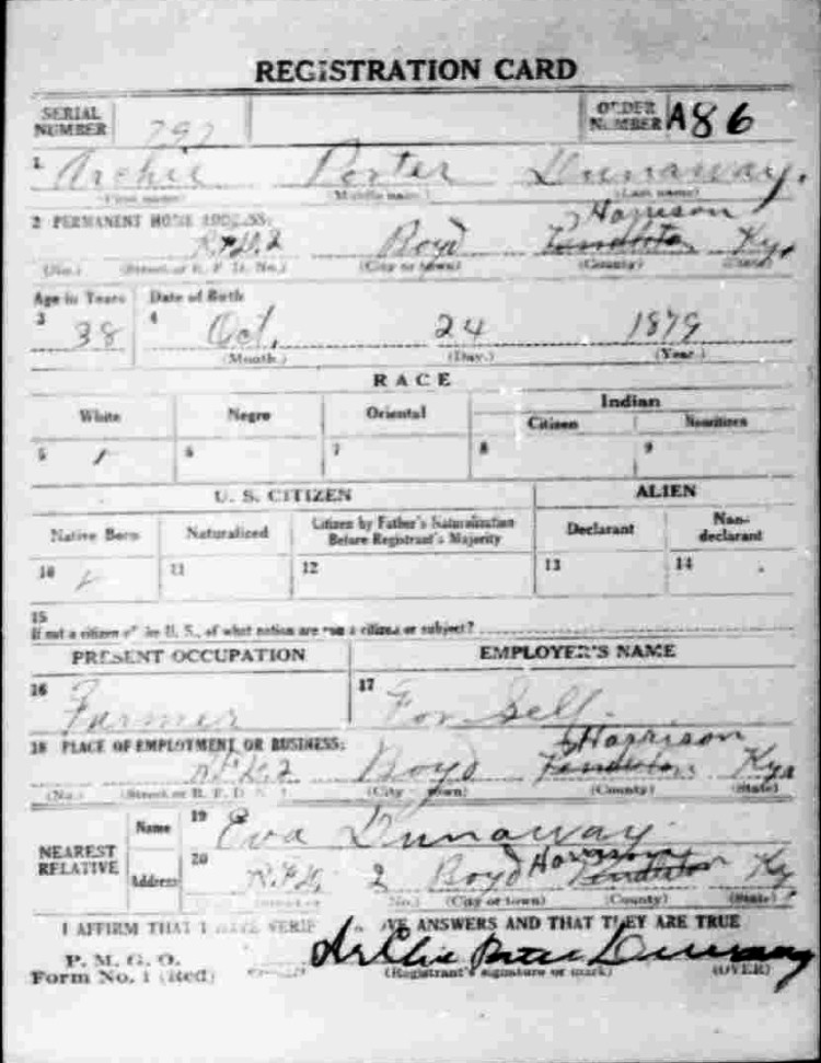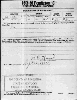 War I Draft Registration Card