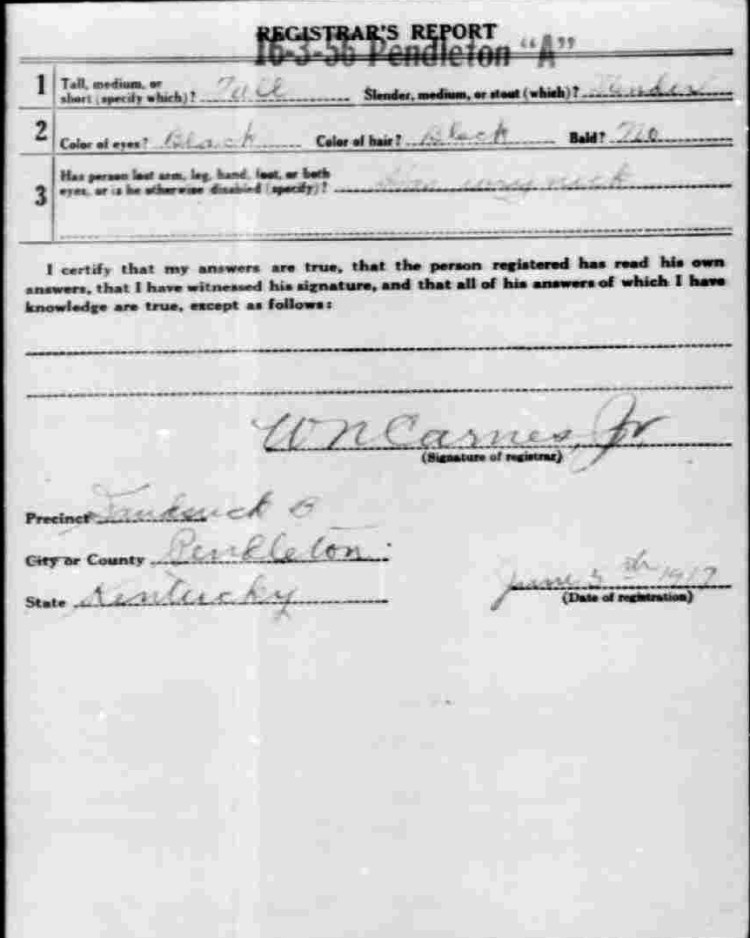 War I Draft Registration Card
