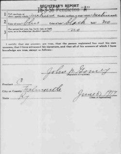 War I Draft Registration Card