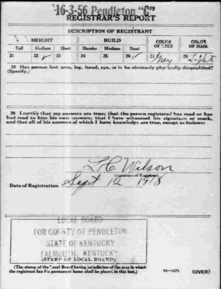 War I Draft Registration Card