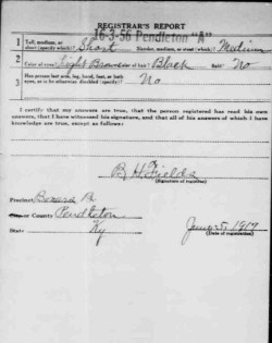 War I Draft Registration Card