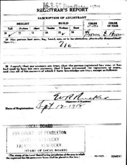 War I Draft Registration Card