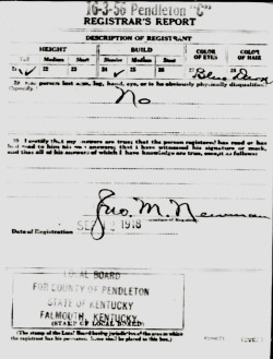 War I Draft Registration Card