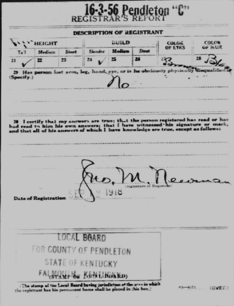 War I Draft Registration Card