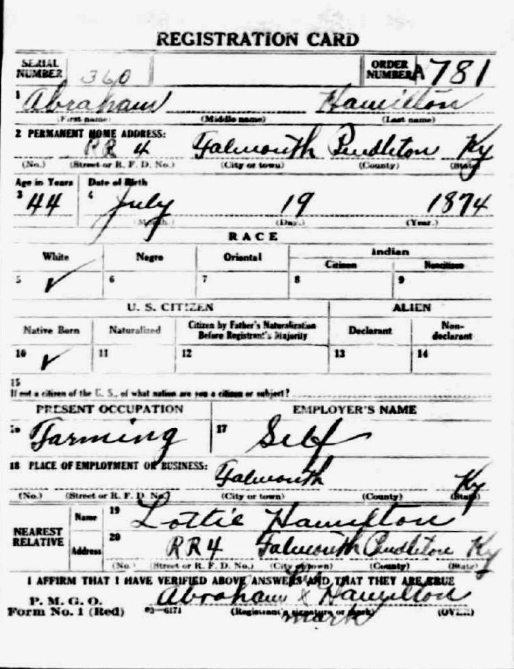 War I Draft Registration Card