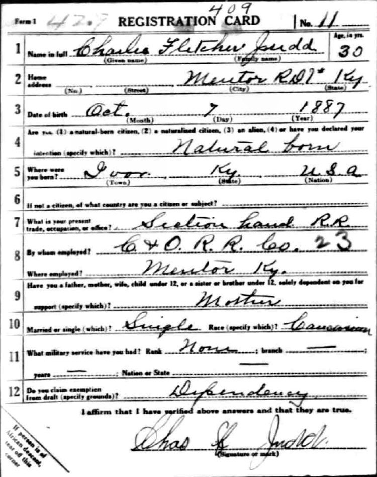 War I Draft Registration Card