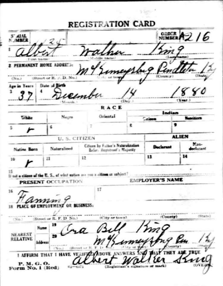 War I Draft Registration Card