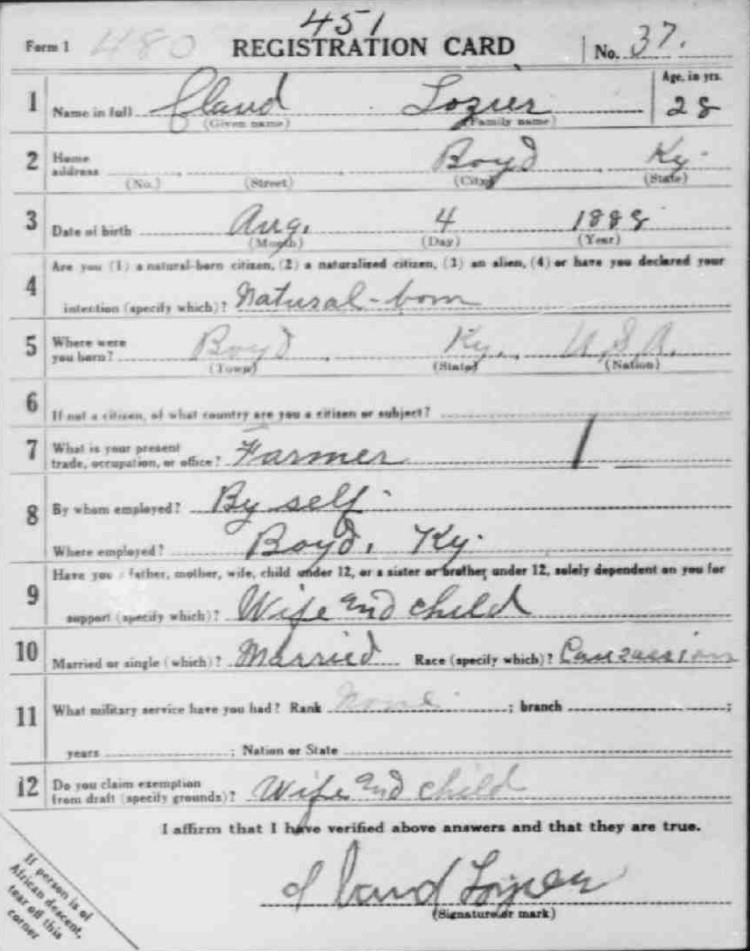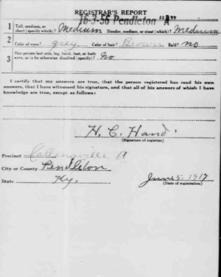 War I Draft Registration Card