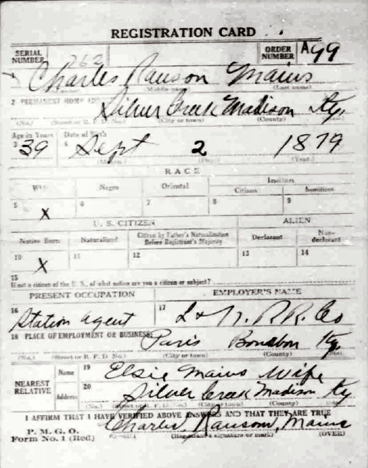 War I Draft Registration Card