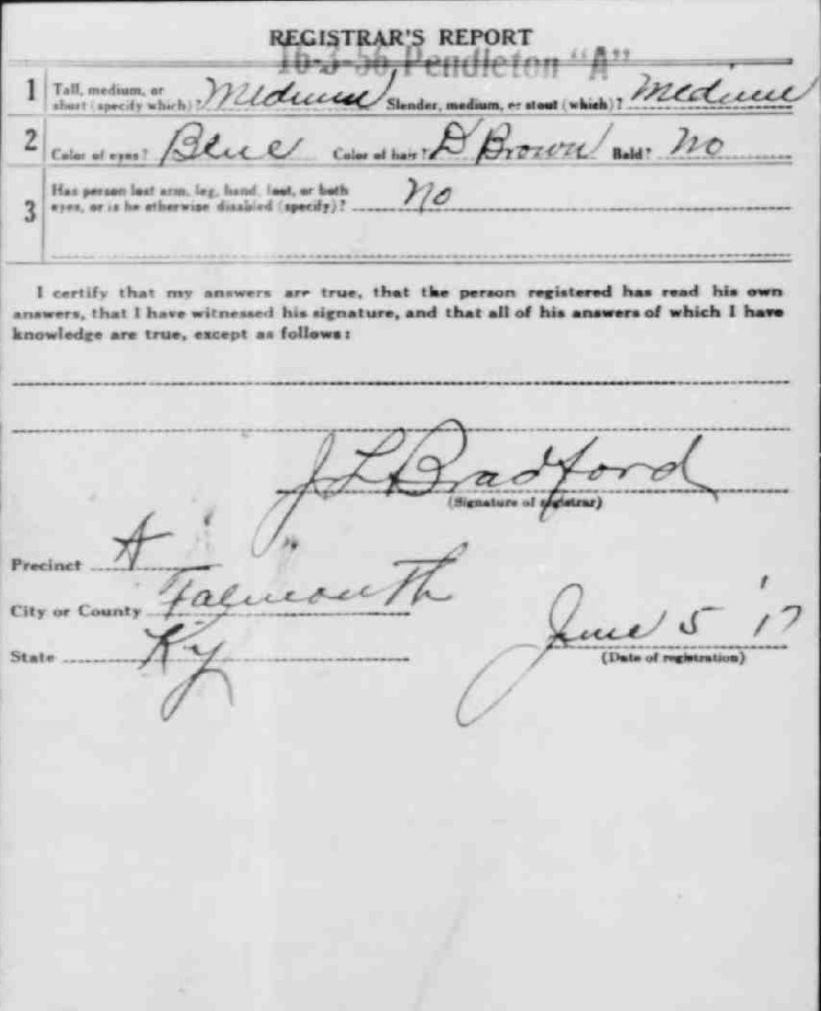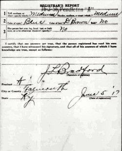 War I Draft Registration Card