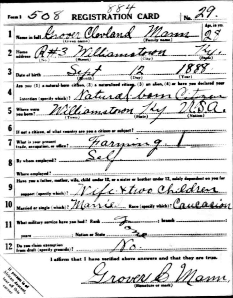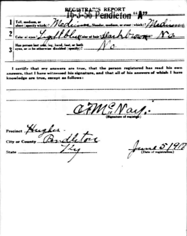 War I Draft Registration Card