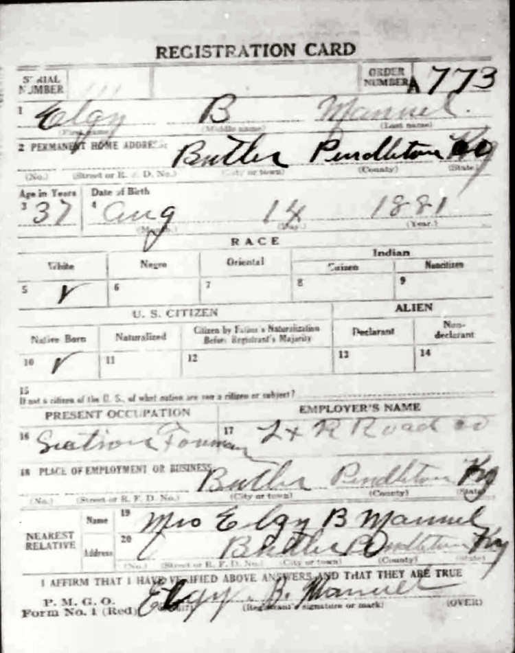 War I Draft Registration Card