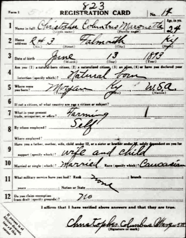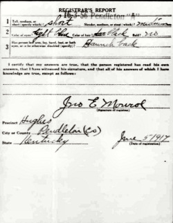 War I Draft Registration Card