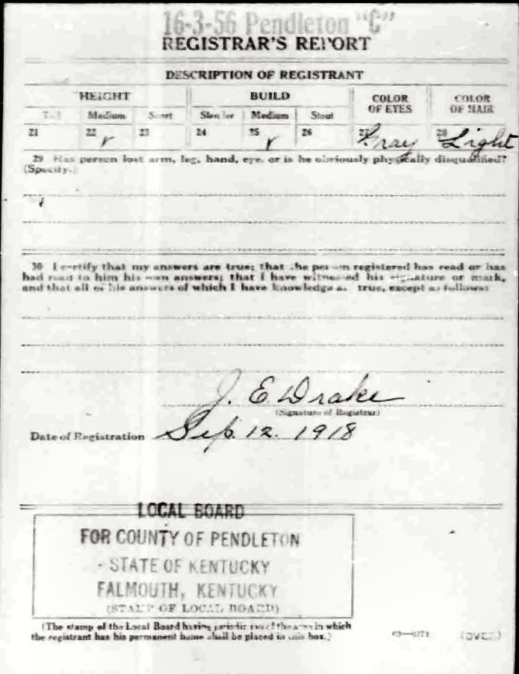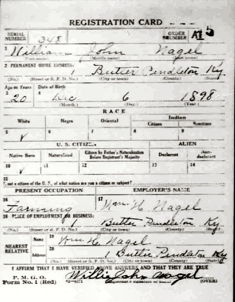War I Draft Registration Card
