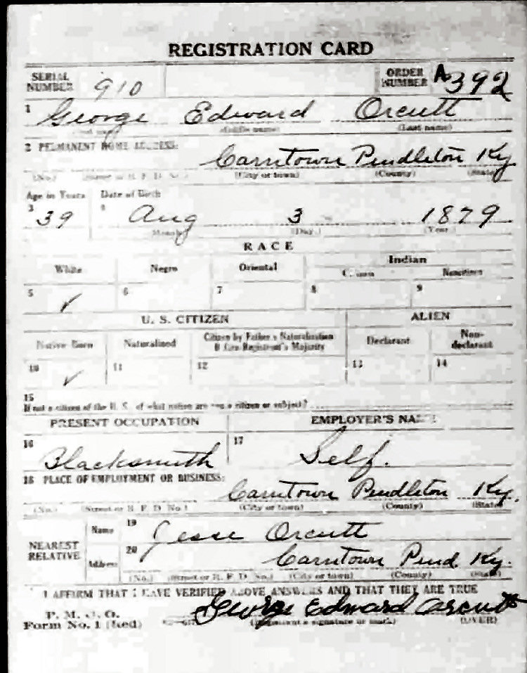 War I Draft Registration Card