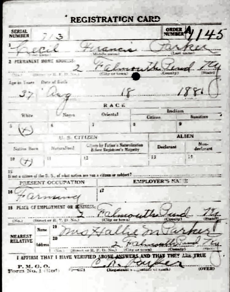 War I Draft Registration Card